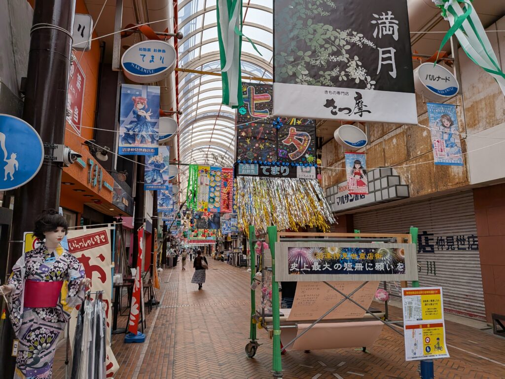 仲見世商店街が七夕まつりの飾りつけをしていて賑やかな感じです