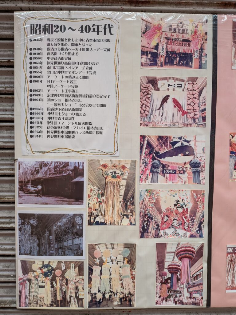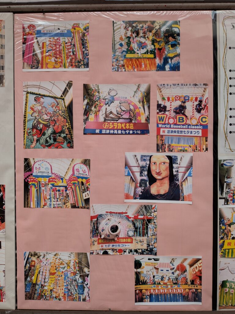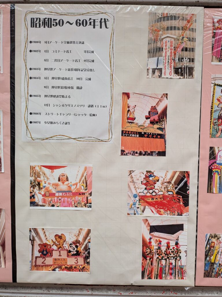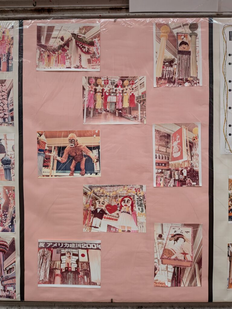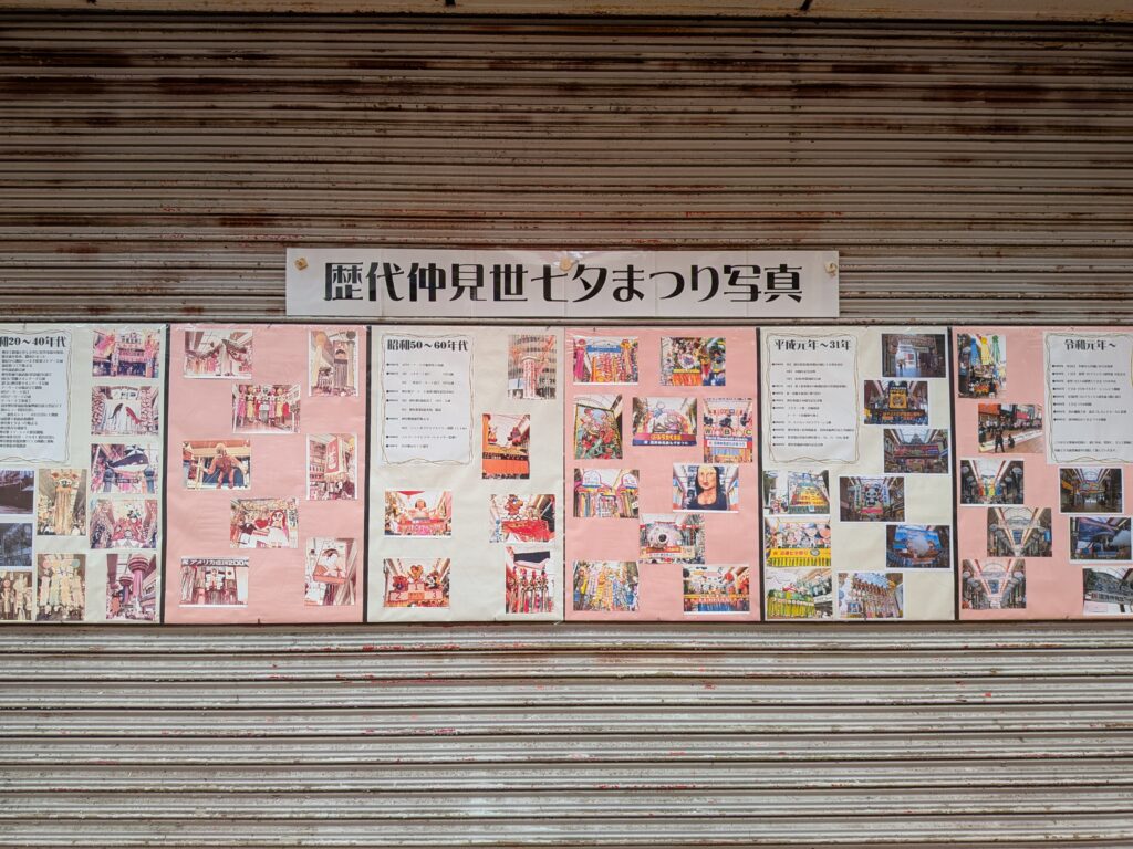 旧マルサン書店前で過去の七夕まつりの写真が展示されていました