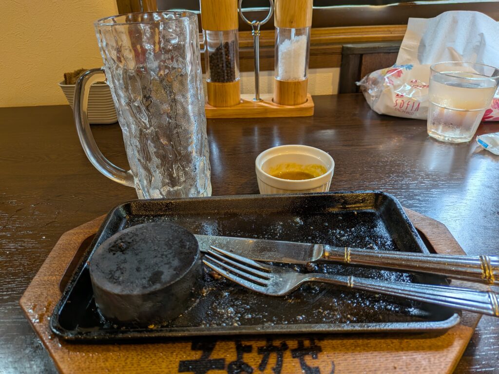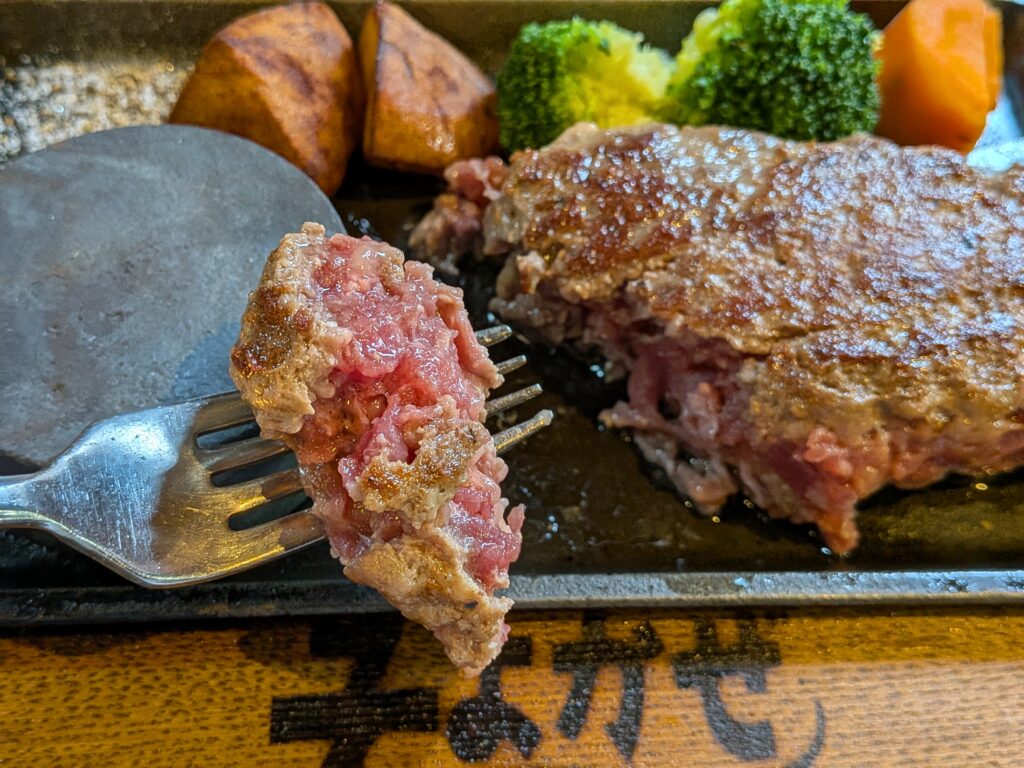 そのままレアでも良いし、鉄板の丸い所で好みの加減で追い焼きもできます