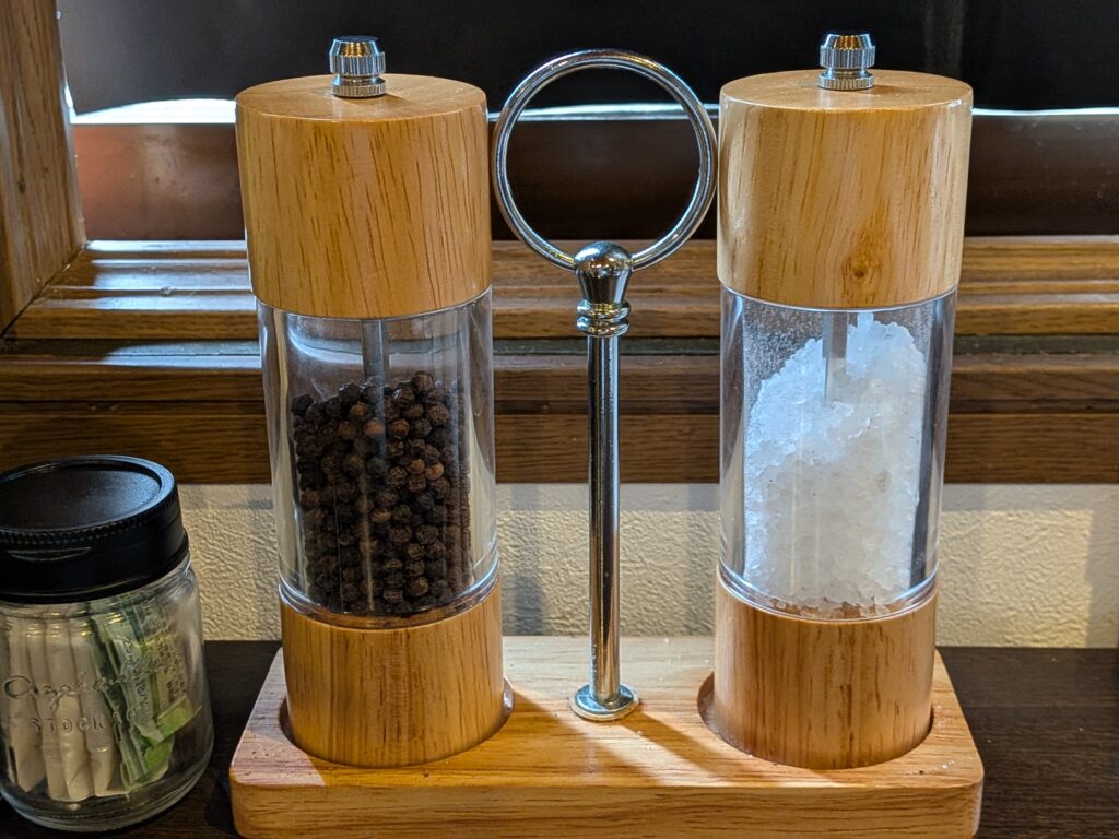 OJI的にはテーブルに添え付けの塩と黒コショウがお薦め