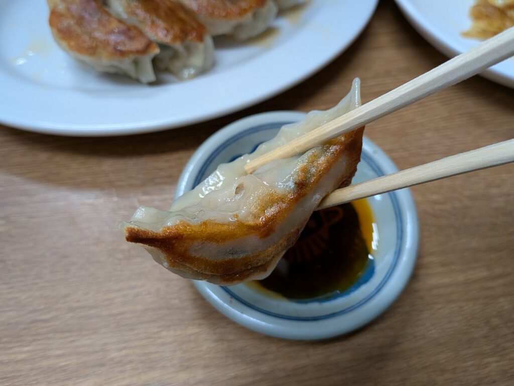 ニラの香りがガツンッ!と効いてて肉々しい美味い餃子です