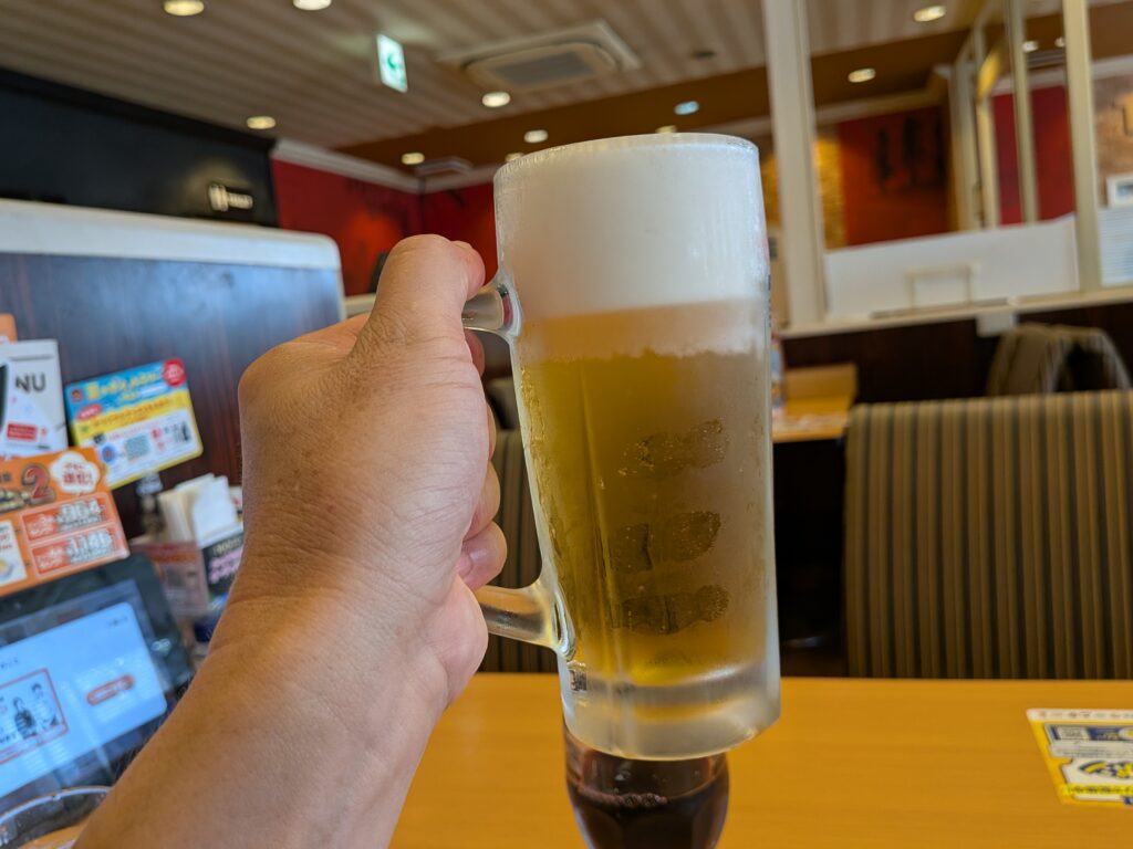 アサヒスーパードライのジョッキ(半額で270円)を追加します