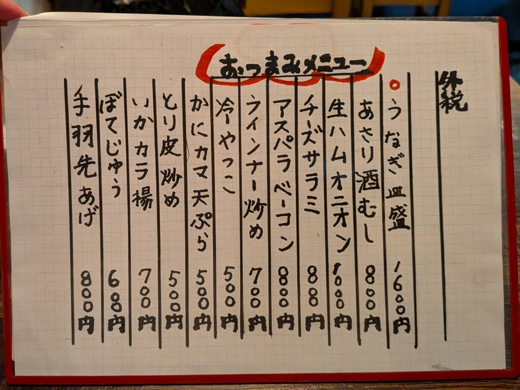 さて、おつまみのオーダーですが