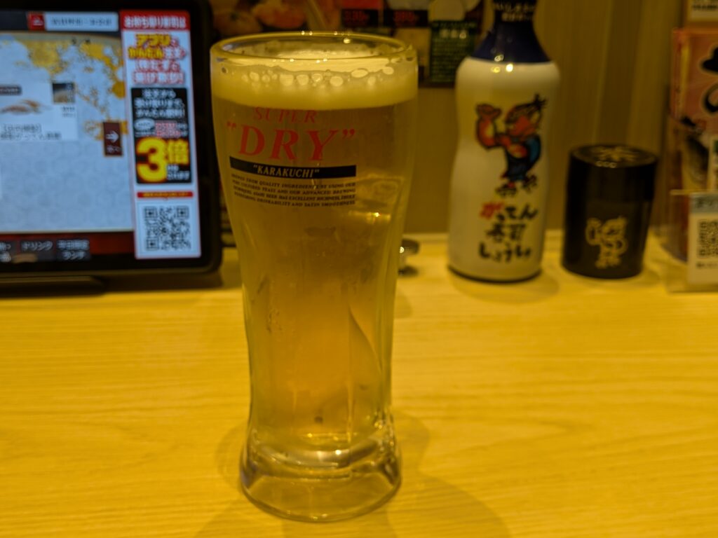 とりあえずビール(アサヒスーパードライ 583円)と、
