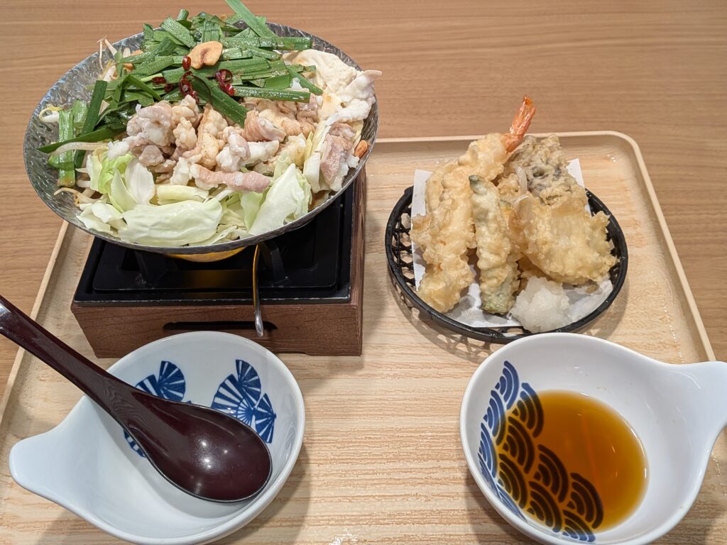 そして待望のもつ鍋と天ぷら盛合せが到着!
