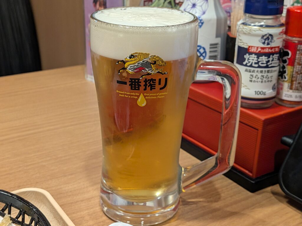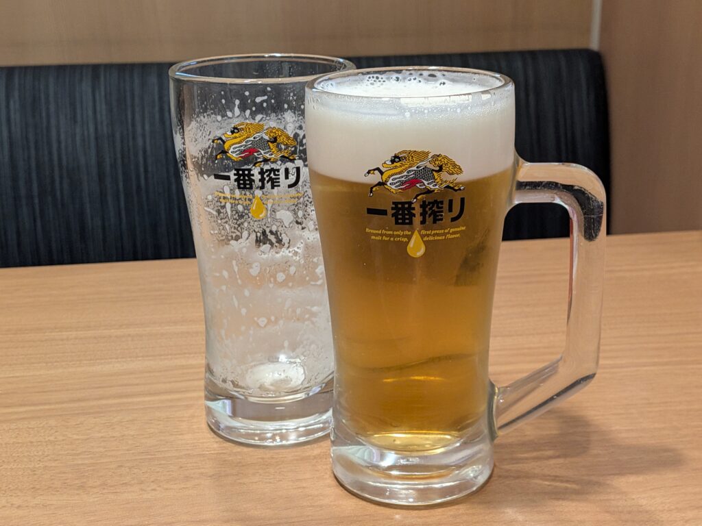 ってな訳でとりあえず生ビール(一番搾り 329円)