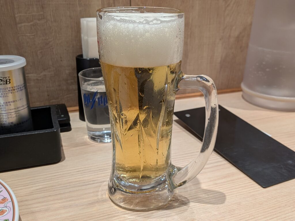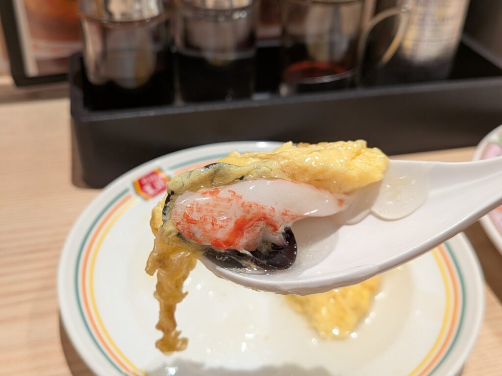 なのでオーダーは生ビール(アサヒスーパードライ 498円)とにんにく激増し餃子(385円)そしてジャストサイズメニューのカニ玉(359円)をオーダーです