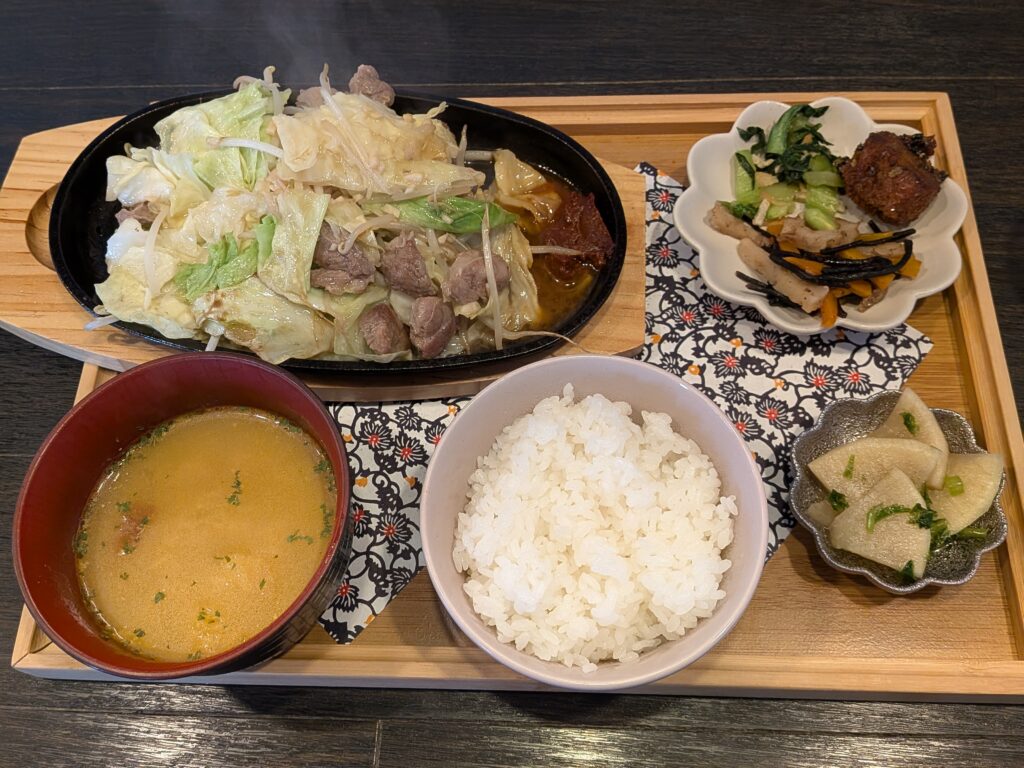 国産豚の鉄板焼きは熱々でジュージュー言ってます