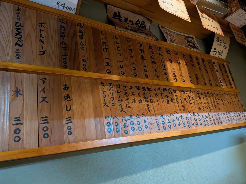 他にも手書きの短冊メニューが所狭しと掲示されています