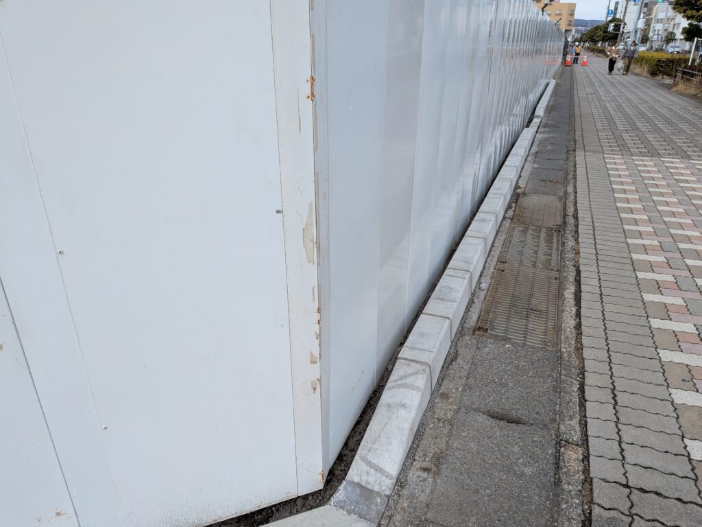 壁と歩道の隙間には縁石も設置してあります