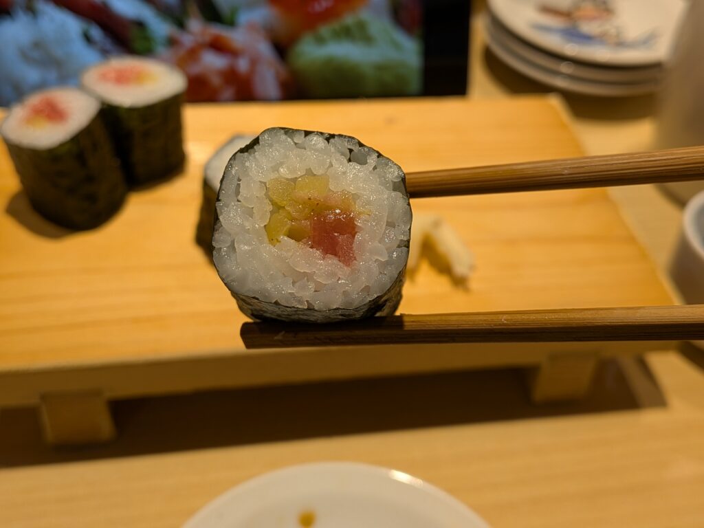 寿司はブリ、巻物はトロタク