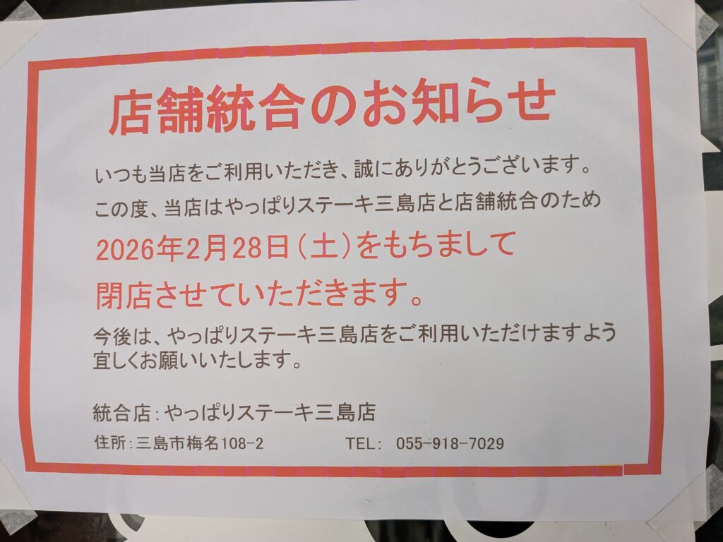 やっぱりステーキさん今年の2月末に閉店してたんですね