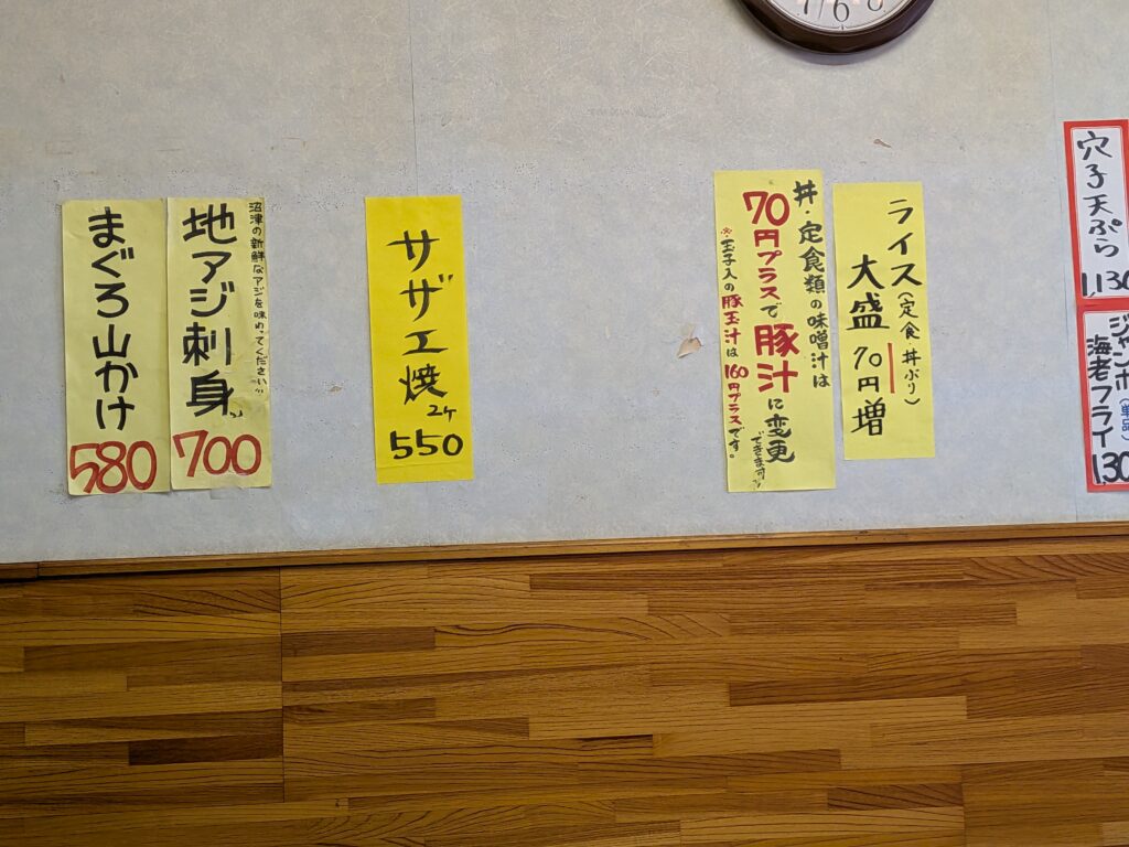 この辺のお店はチェーン店と違って、市場の仕入れ状況でおすすめメニューを変えてきているのも楽しいんですよね